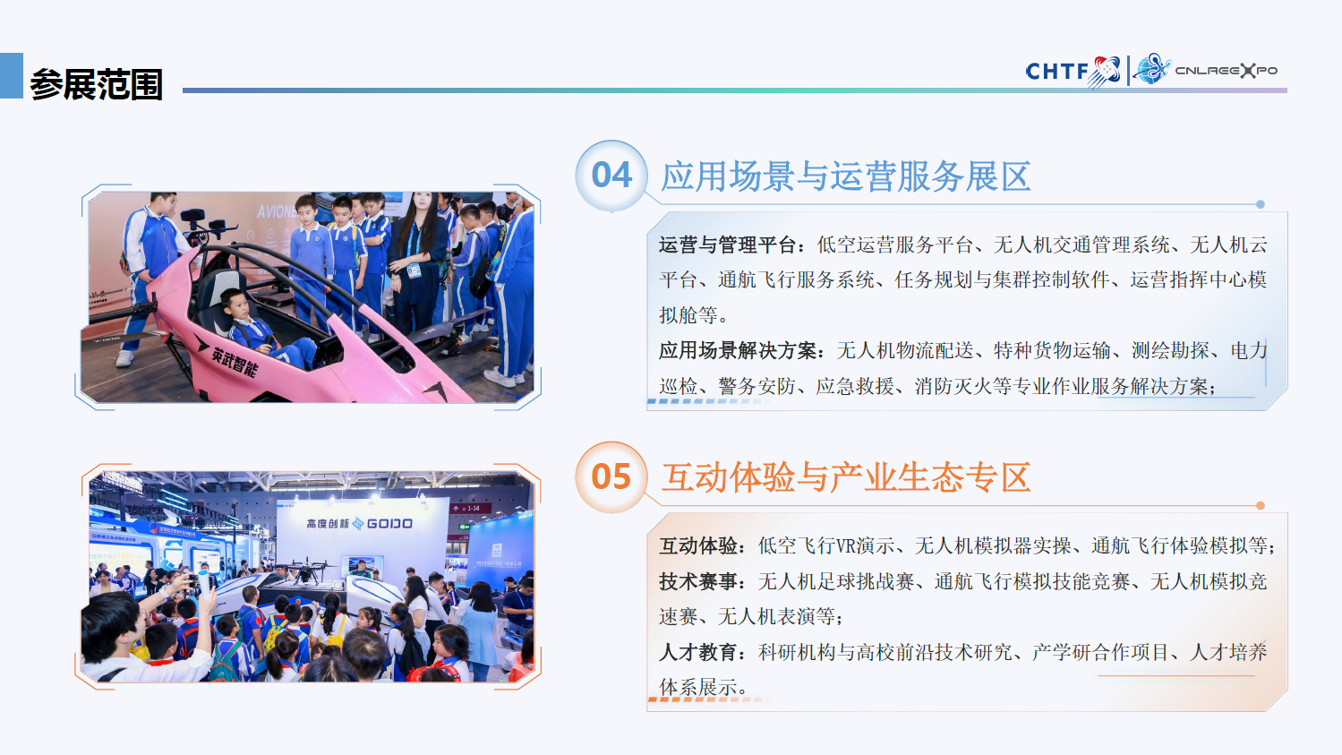 - 互动体验:低空飞行VR演示、无人机模拟器实操、通航飞行体验模拟等;